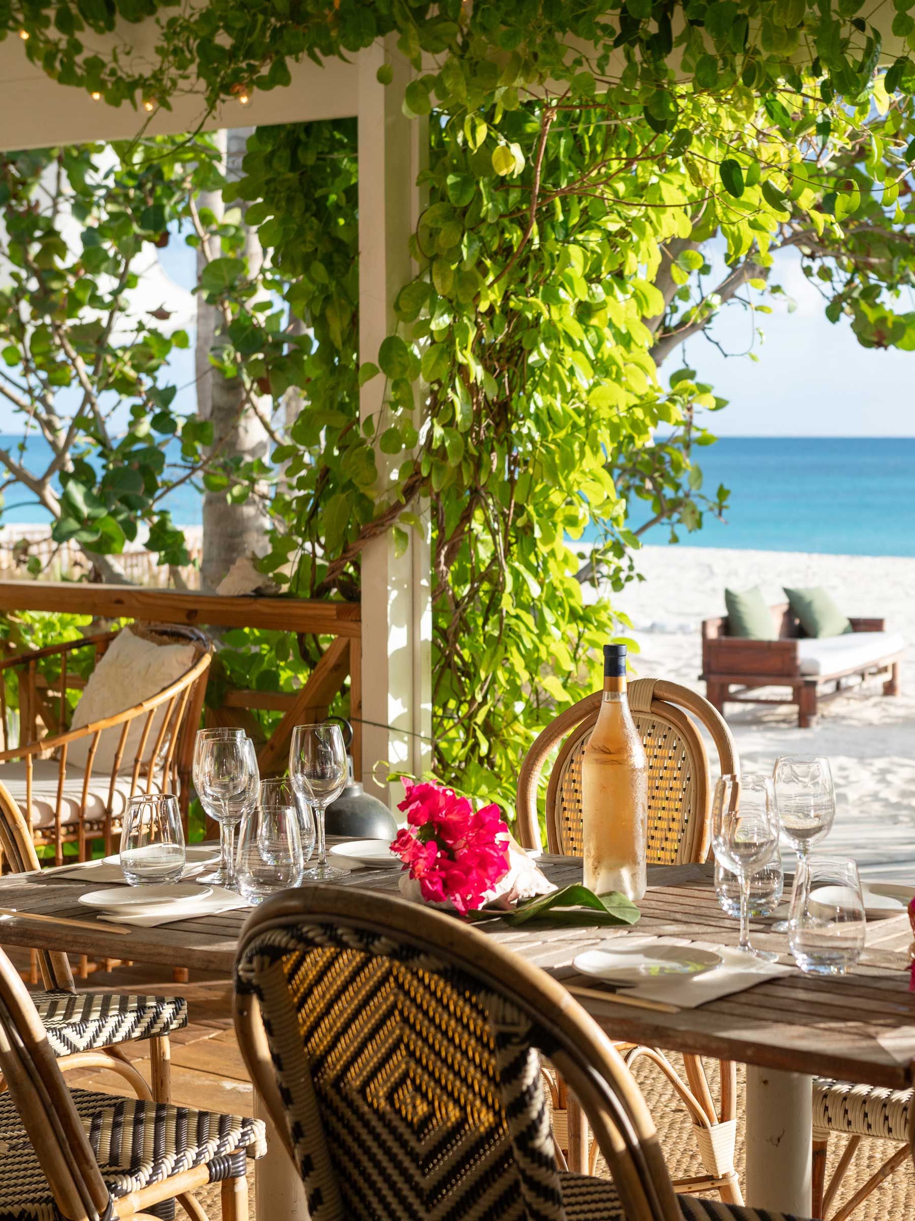 All-day drinks and light dining overlooking the sea, with service flowing seamlessly from pool to lounger. The cocktail program is built around what the island offers: Antiguan sugar apple, Barbudan honey, fresh-squeezed citrus, and house-made infusions. Rum poured into freshly opened coconuts. Local hot-sauce Bloody Marys.
